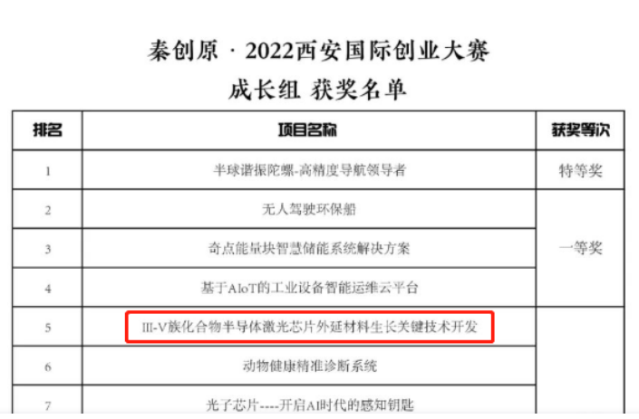 Recently, Qin Chuangyuan · 2022 Xi'an International Entrepreneurship Competition announced the list of winners. The key research and development project of Shaanxi Investment Xinxing Lixin Optoelectronics in 2022, "Key Technology Development Project for Growth of Epitaxial Materials of III-V Compound Semiconductor Laser Chips", won the second prize of the competition.
