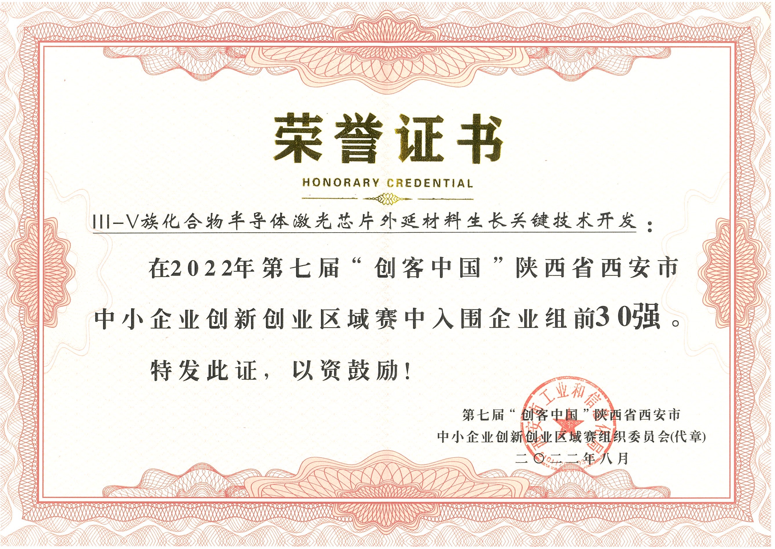 he company was selected as the top 30 enterprise group of the 7th "Maker China" Xi'an SME Innovatio
