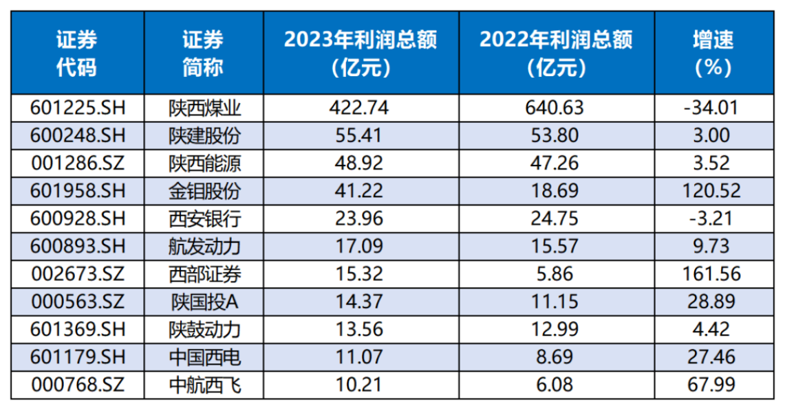 前(qian)三名依然穩定(ding),都是熟悉(xi)的老面(mian)孔,依次是陜西煤業(601225)、陜建股份(600248)、陜西能源(001286)。其中陜西煤業2023年利潤總額422.74億元,相比于去年“縮水”217.89億元,主要為煤炭價格震蕩下行,疊加成本上升所致。