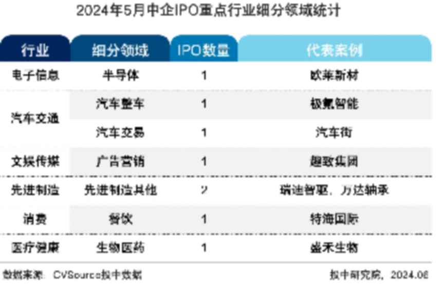 表5 2024年5月中企IPO重(zhong)點行業細(xi)分領域統計