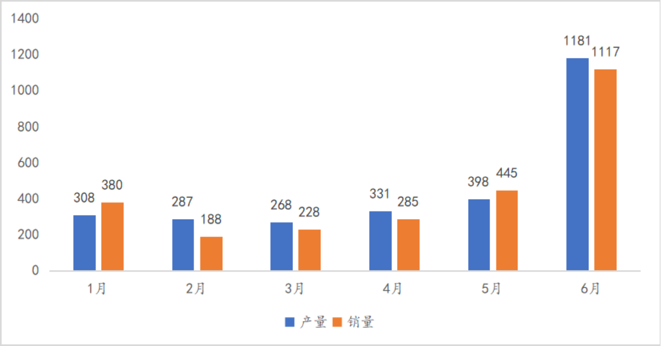 圖 2:2024年前(qian)6月氫燃(ran)料(liao)電(dian)池車產量與(yu)銷量