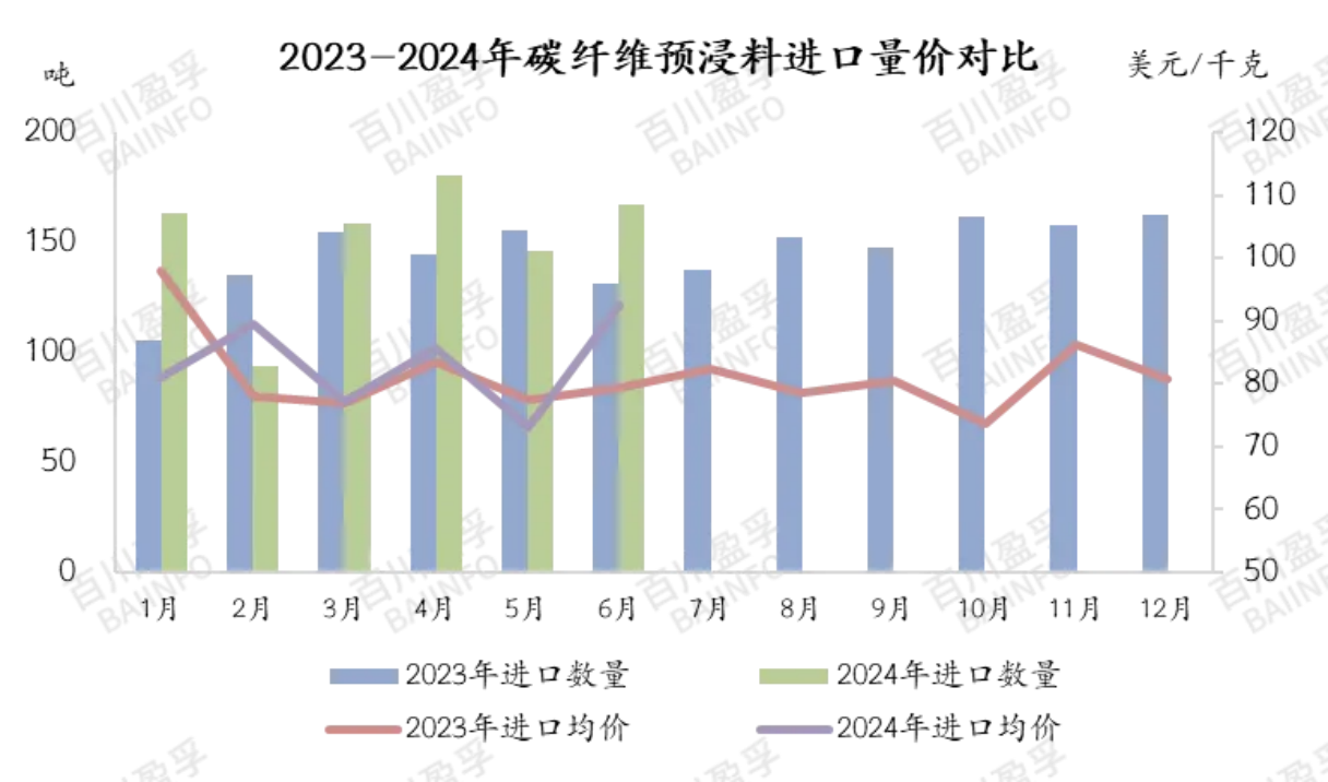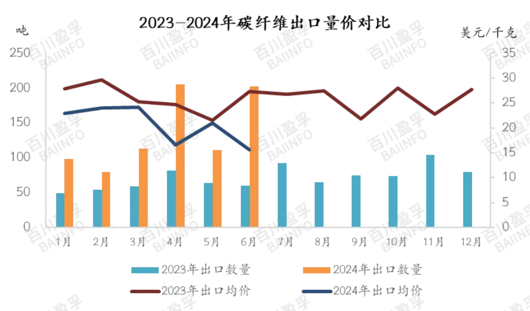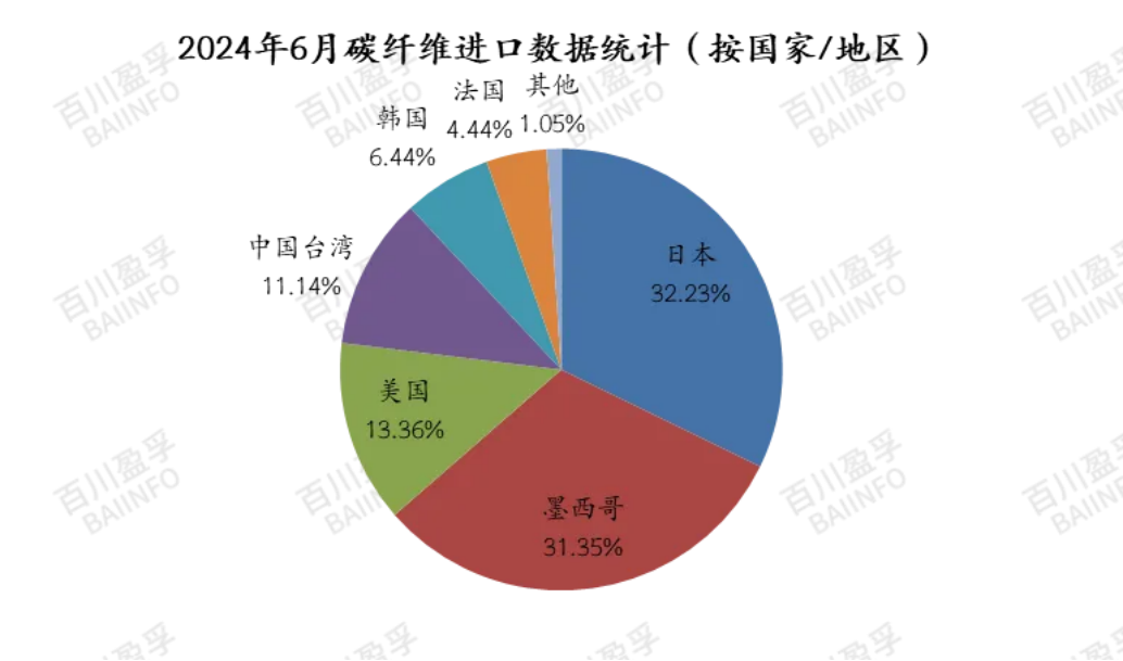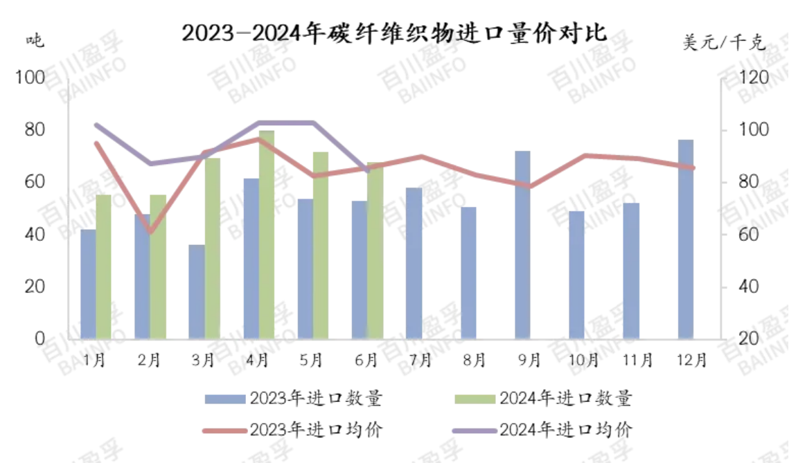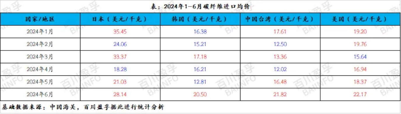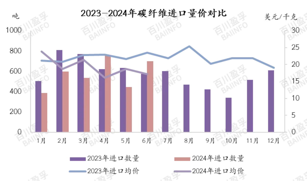 2024年6月碳纖維(wei)進(jin)(jin)口總量699.243噸,同比增加(jia)22.10%,環比增加(jia)57.36%。其進(jin)(jin)口主要(yao)來自日(ri)本和墨西哥,進(jin)(jin)口數量為225.340噸和219.181噸。碳纖維(wei)進(jin)(jin)口均(jun)價為17.12美元(yuan)(yuan)/千克,其中日(ri)本碳纖維(wei)進(jin)(jin)口均(jun)價為28.14美元(yuan)(yuan)/千克。