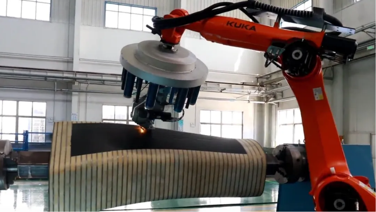 威海光(guang)威精密機械有(you)限公(gong)司(si)副總工程師白賢榮(rong):“在縫隙逐漸(jian)擴大的情況下,這個位置,我們進行了增(zeng)紗(絲)。通過錯(cuo)層算法,我們可以(yi)使鋪層的厚度,控制在正負(fu)0.1毫米內,也就是一張紙的厚度,整個面(mian)都(dou)很均勻。”