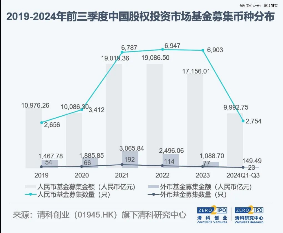 (2)募資(zi)幣種:人民幣基金數(shu)量(liang)降幅(fu)近(jin)五成,外幣基金募資規模(mo)同比降幅(fu)超80%