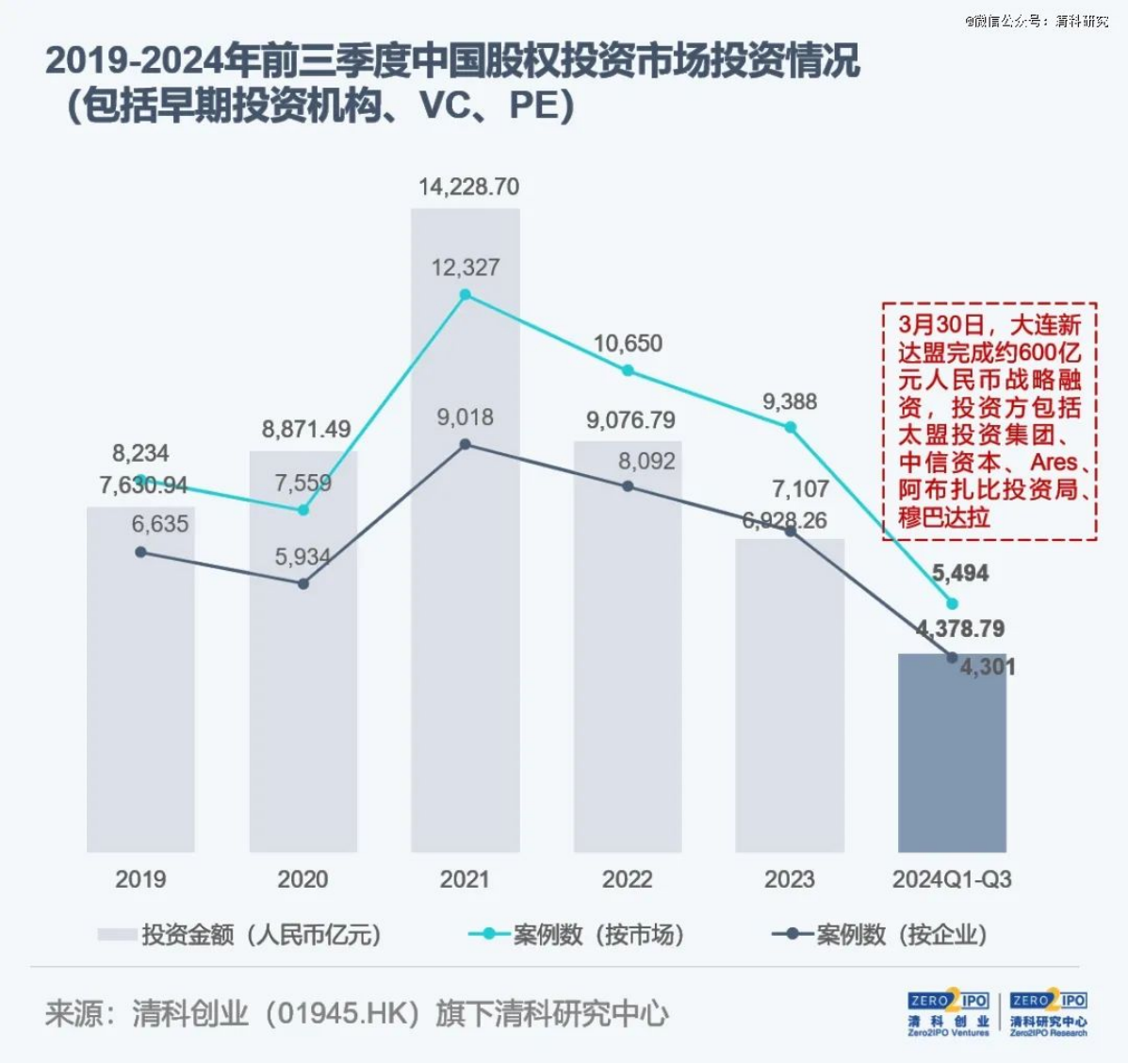 2024年前(qian)三(san)(san)季度,盡管中國股權(quan)投(tou)資(zi)市(shi)場新(xin)募(mu)(mu)基金數(shu)量和(he)規模(mo)、投(tou)資(zi)案例(li)數(shu)與金額整體延續下(xia)滑態(tai)勢,但第三(san)(san)季度市(shi)場新(xin)募(mu)(mu)基金規模(mo)與投(tou)資(zi)金額均環比(bi)回升,政策層面(mian)也在不(bu)斷(duan)釋(shi)放積極信號,鼓(gu)勵股權(quan)投(tou)資(zi)市(shi)場高質量發展(zhan)。